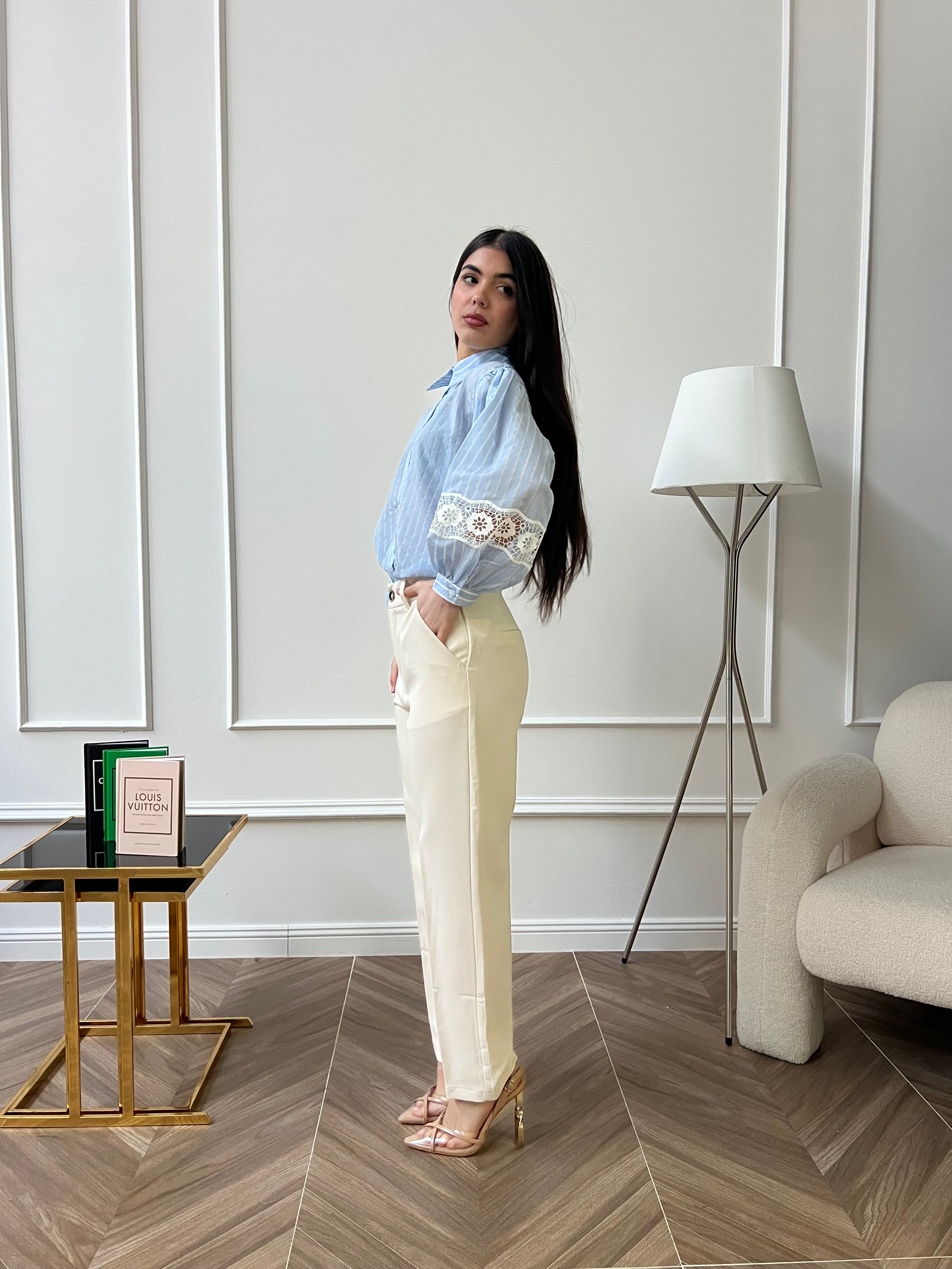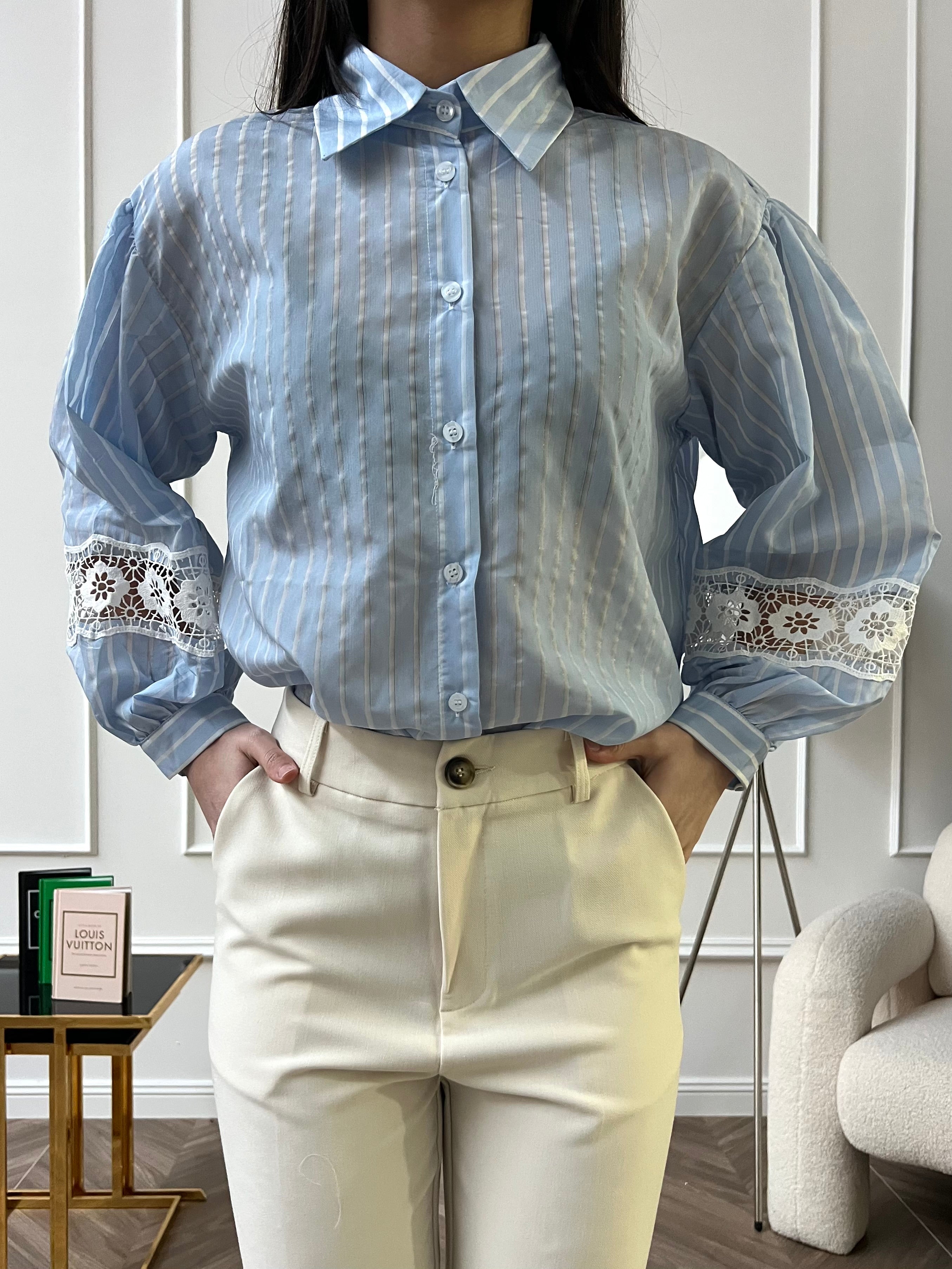 Camicia Con Inserti In Macramè Azzurra