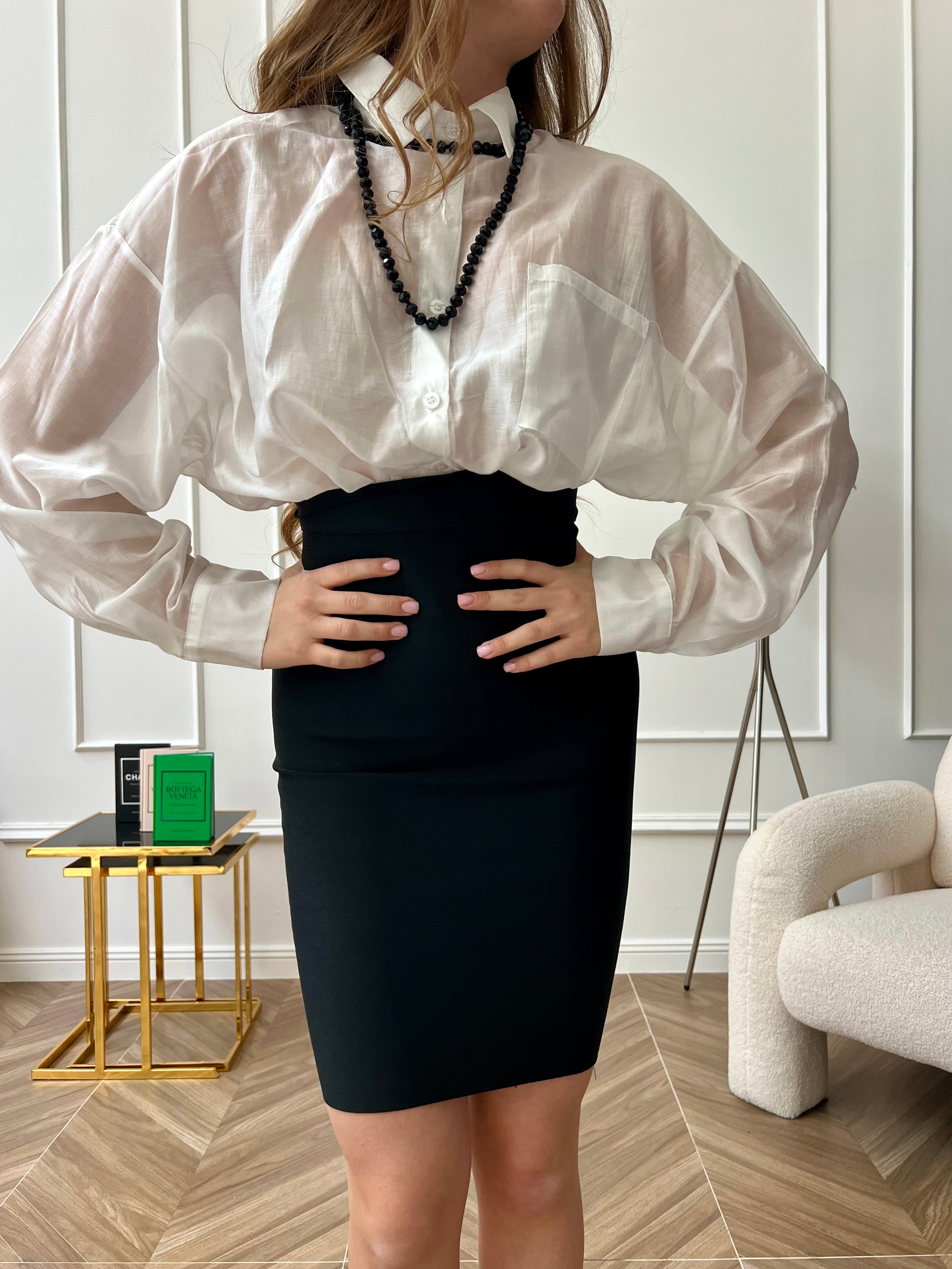 Gonna Drappeggiata In Micro Rete Nera