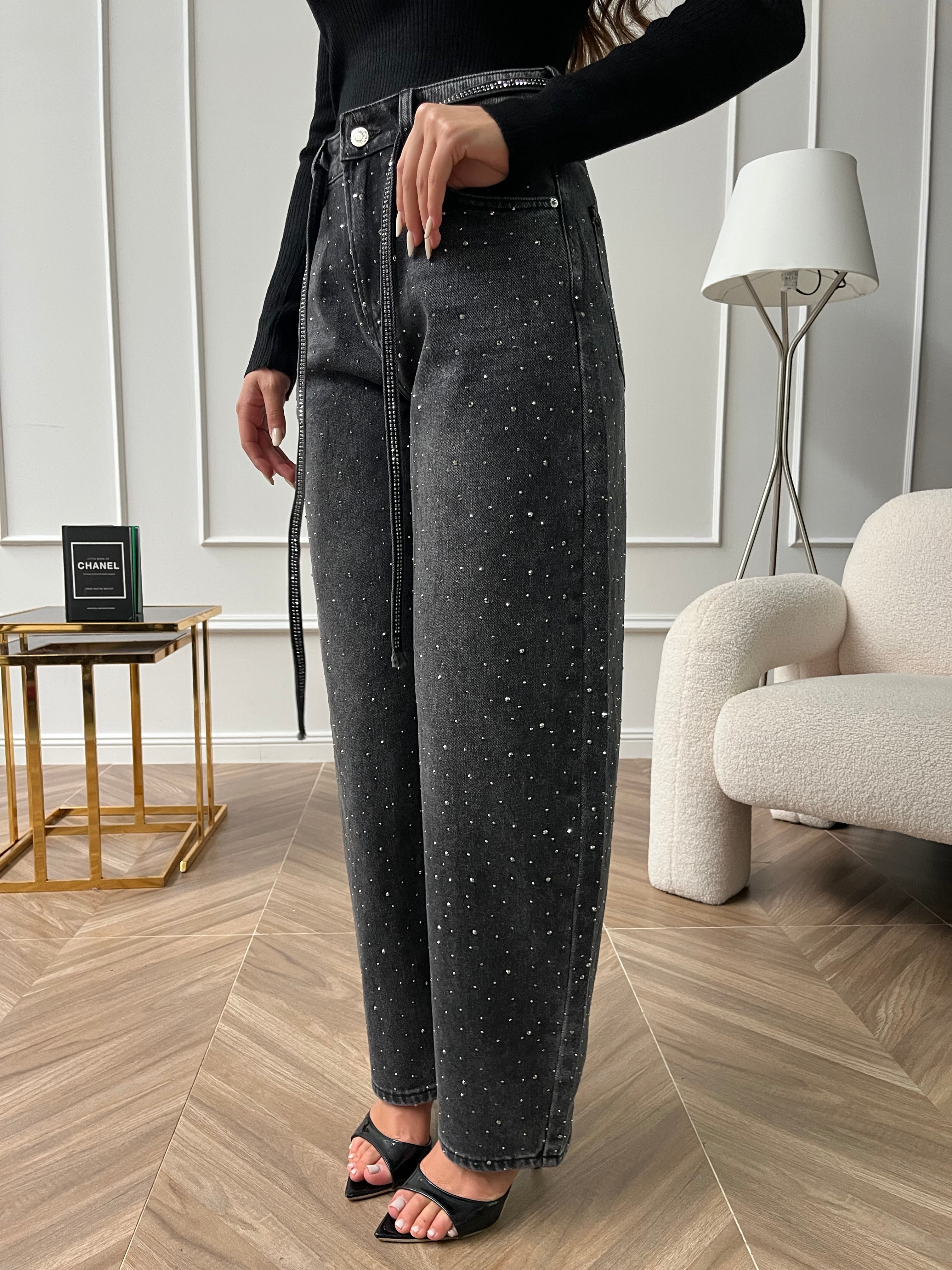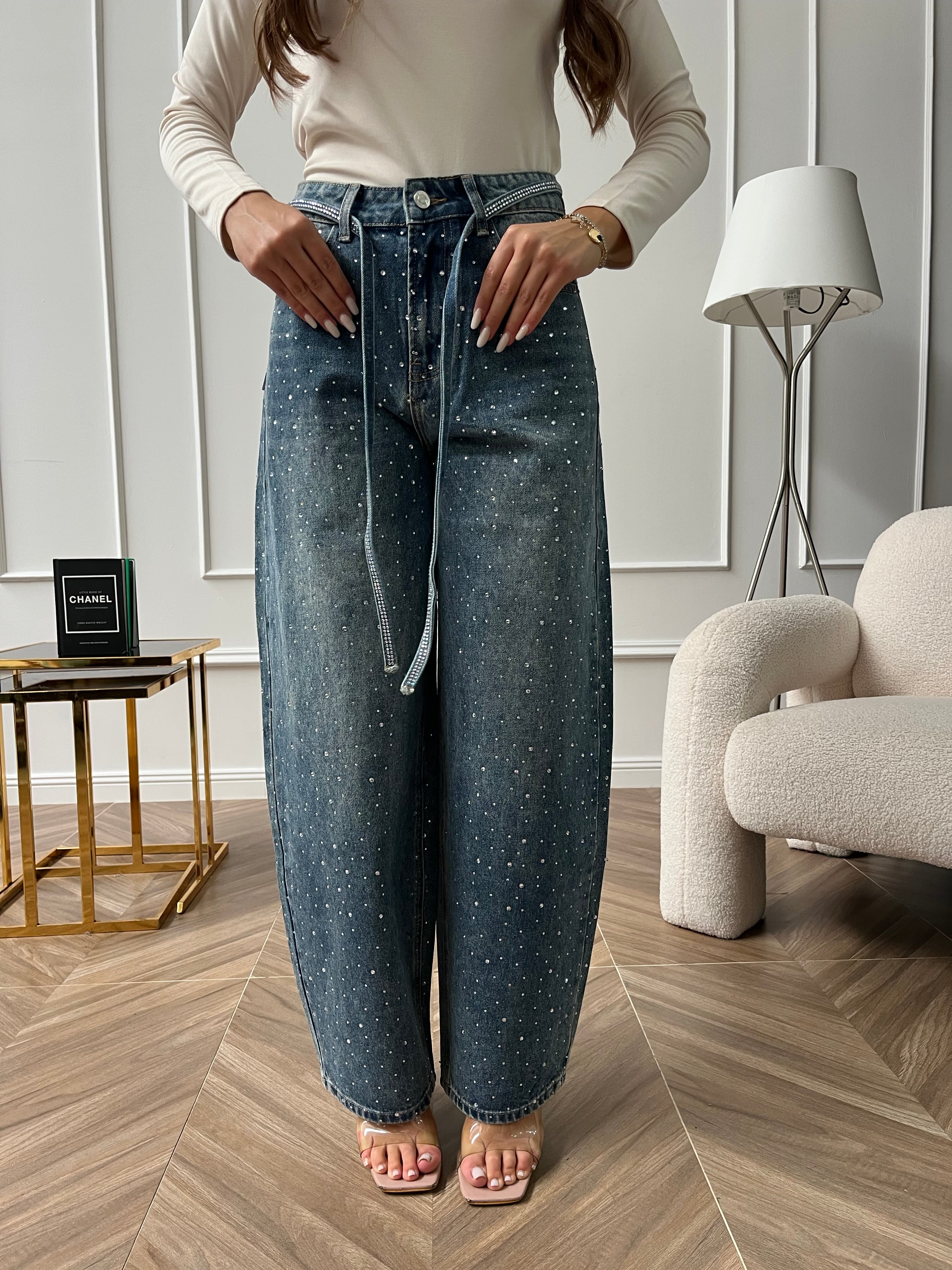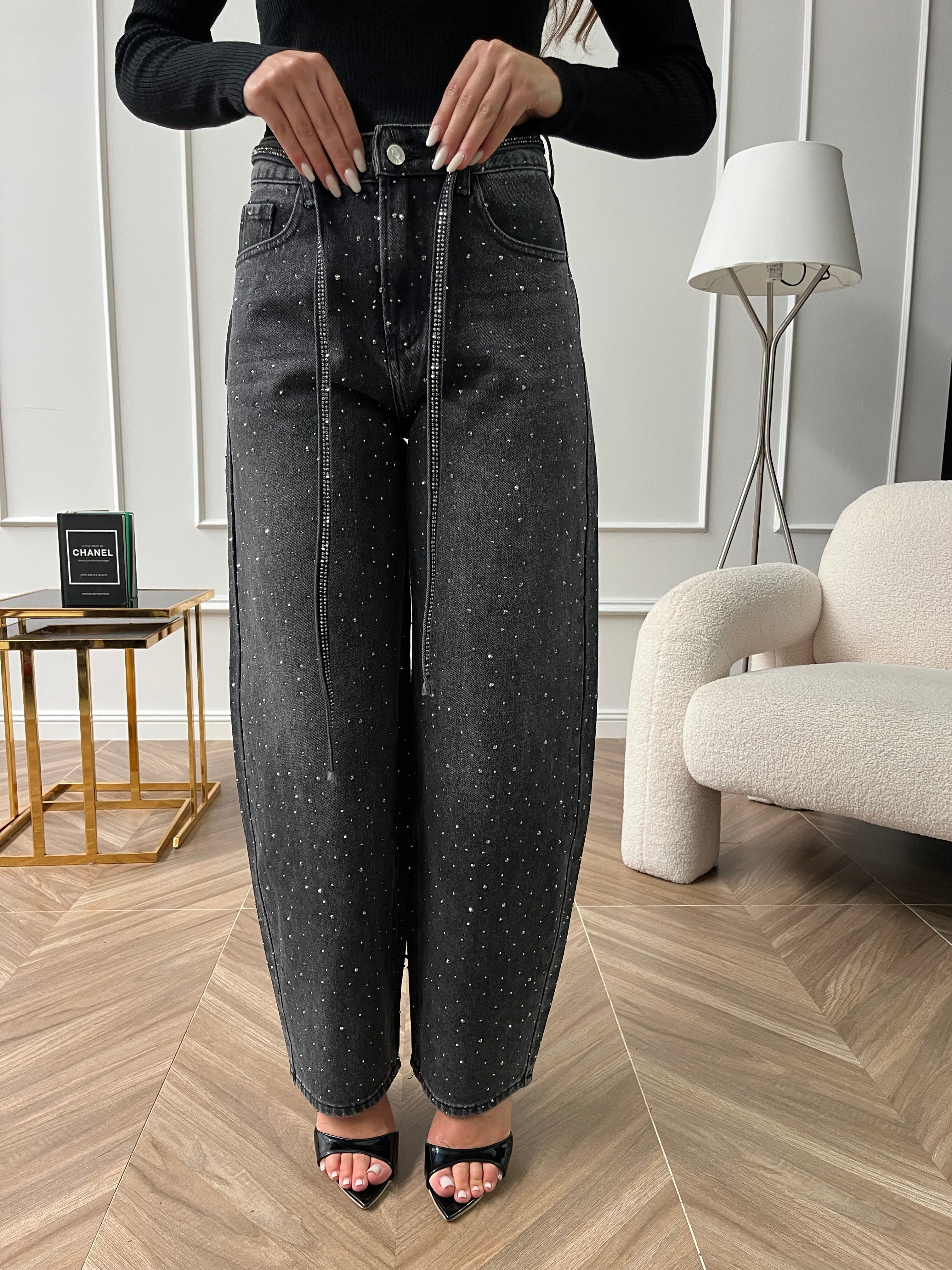 Denim Pioggia Di Strass