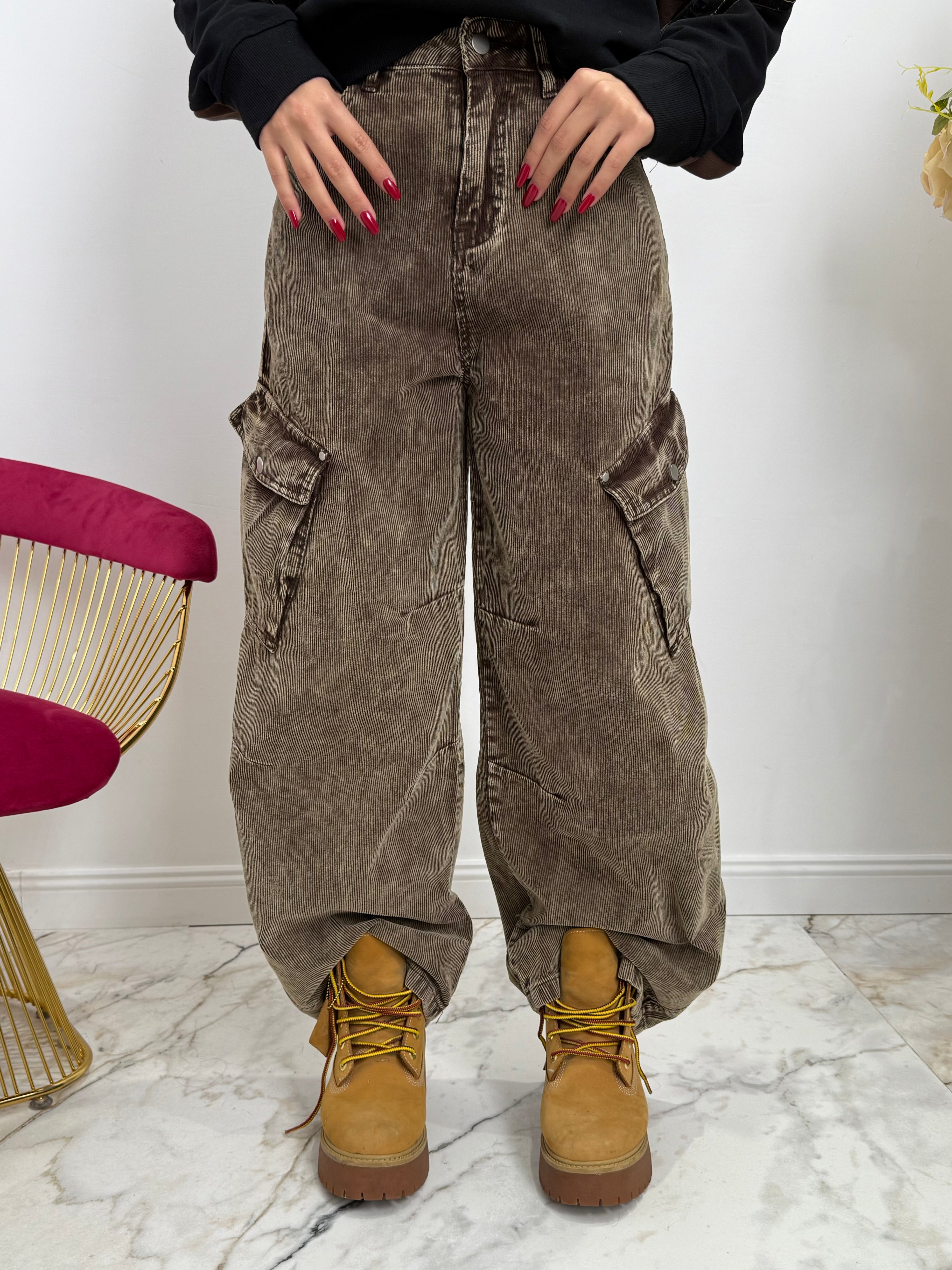 Denim A Costine In Velluto Marrone