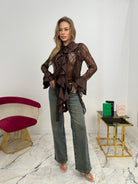 La modella è alta 168 cm e indossa una taglia xs