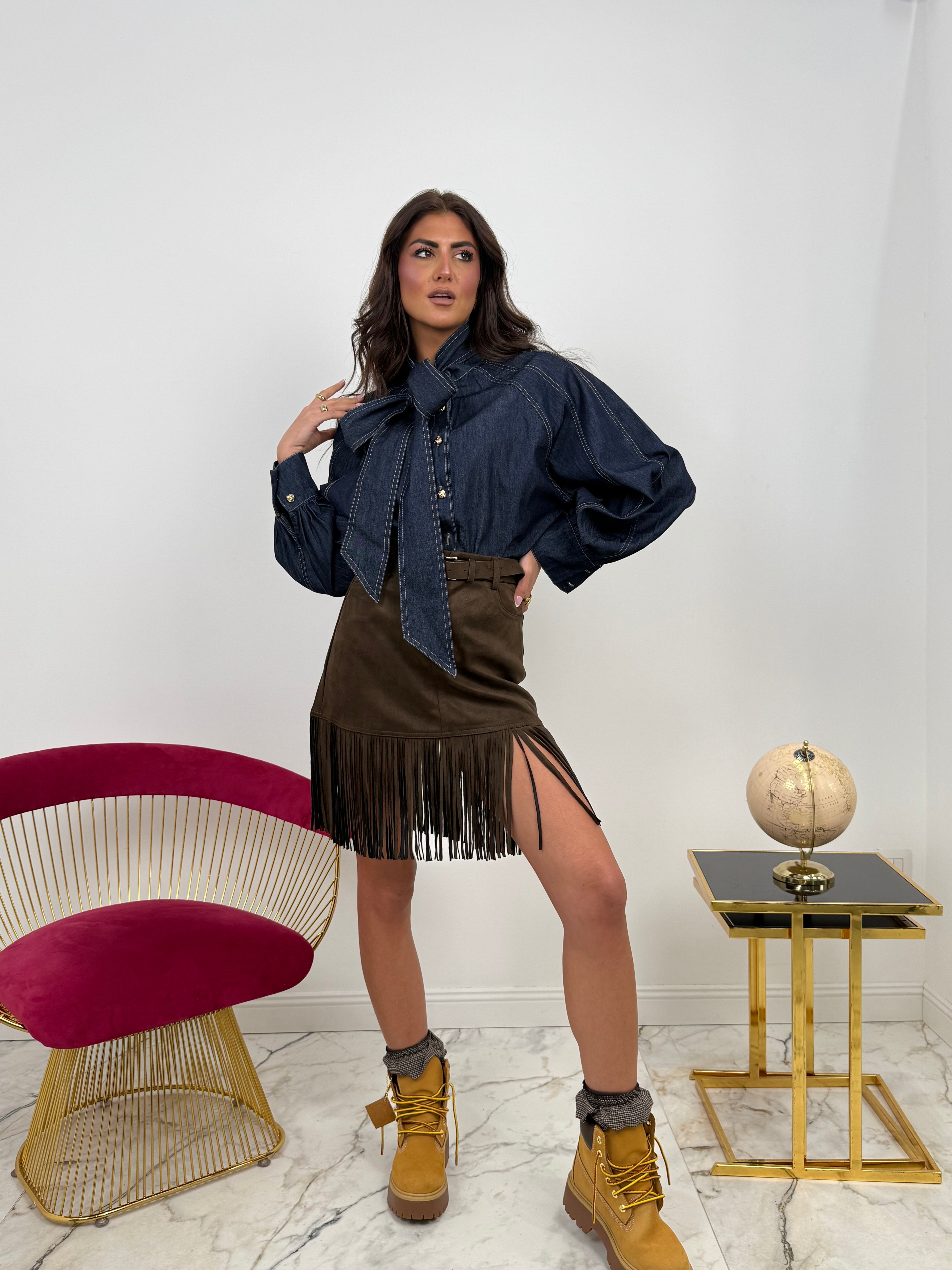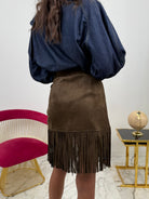 Gonna In Camoscio Con Frange Marrone
