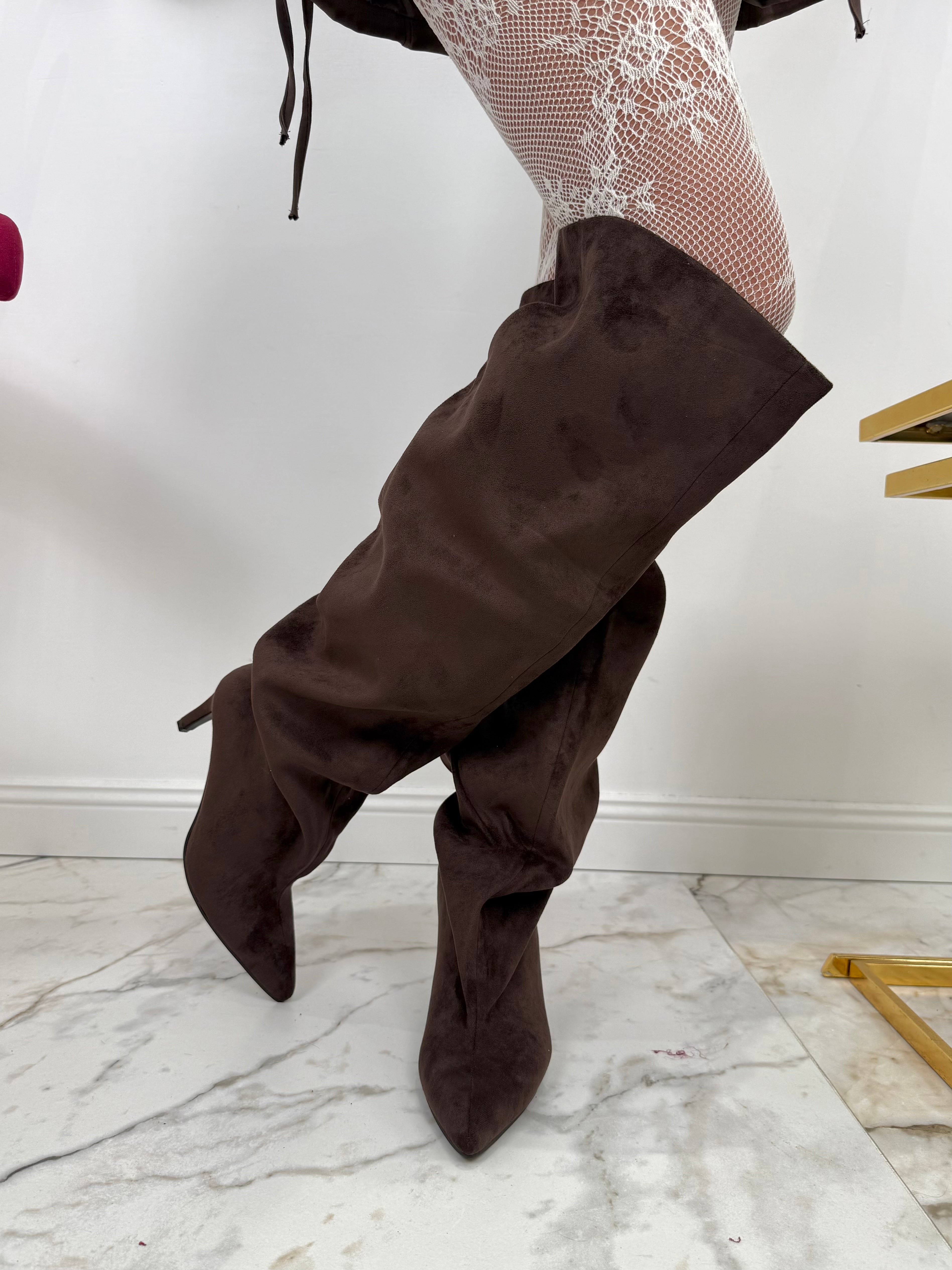 Stivale In Camoscio Gamba Larga Marrone