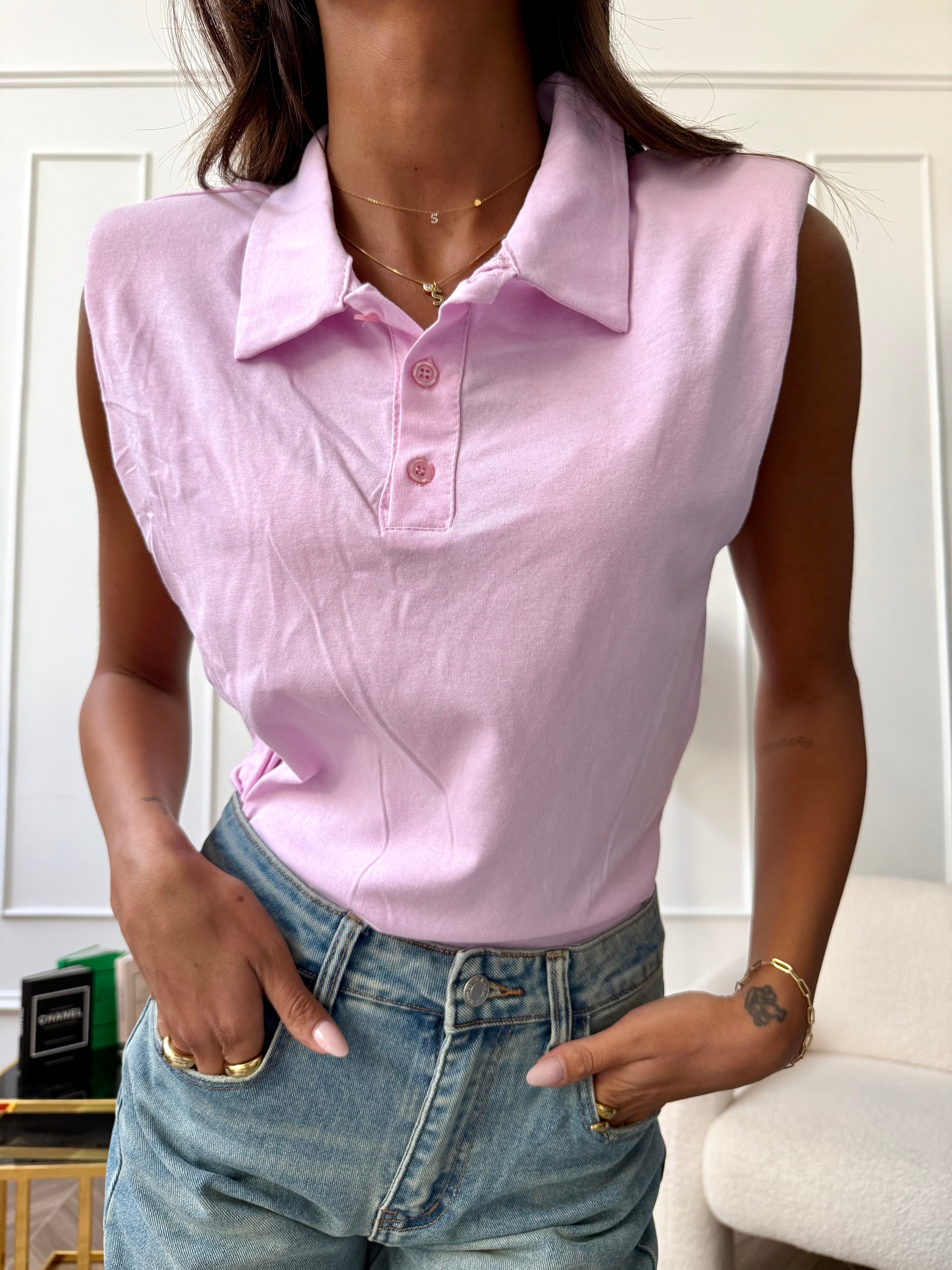 Polo Con Spalline Rosa