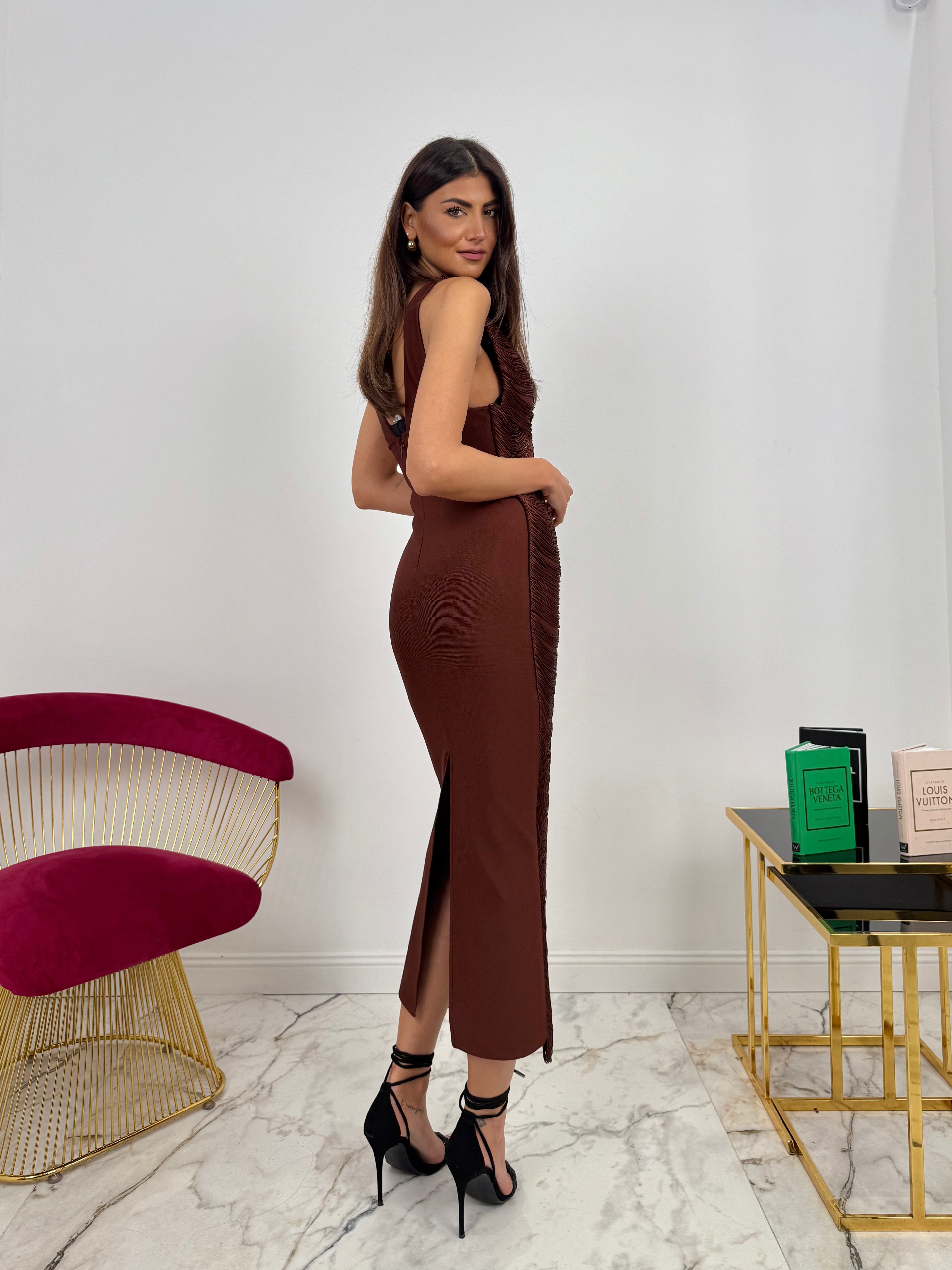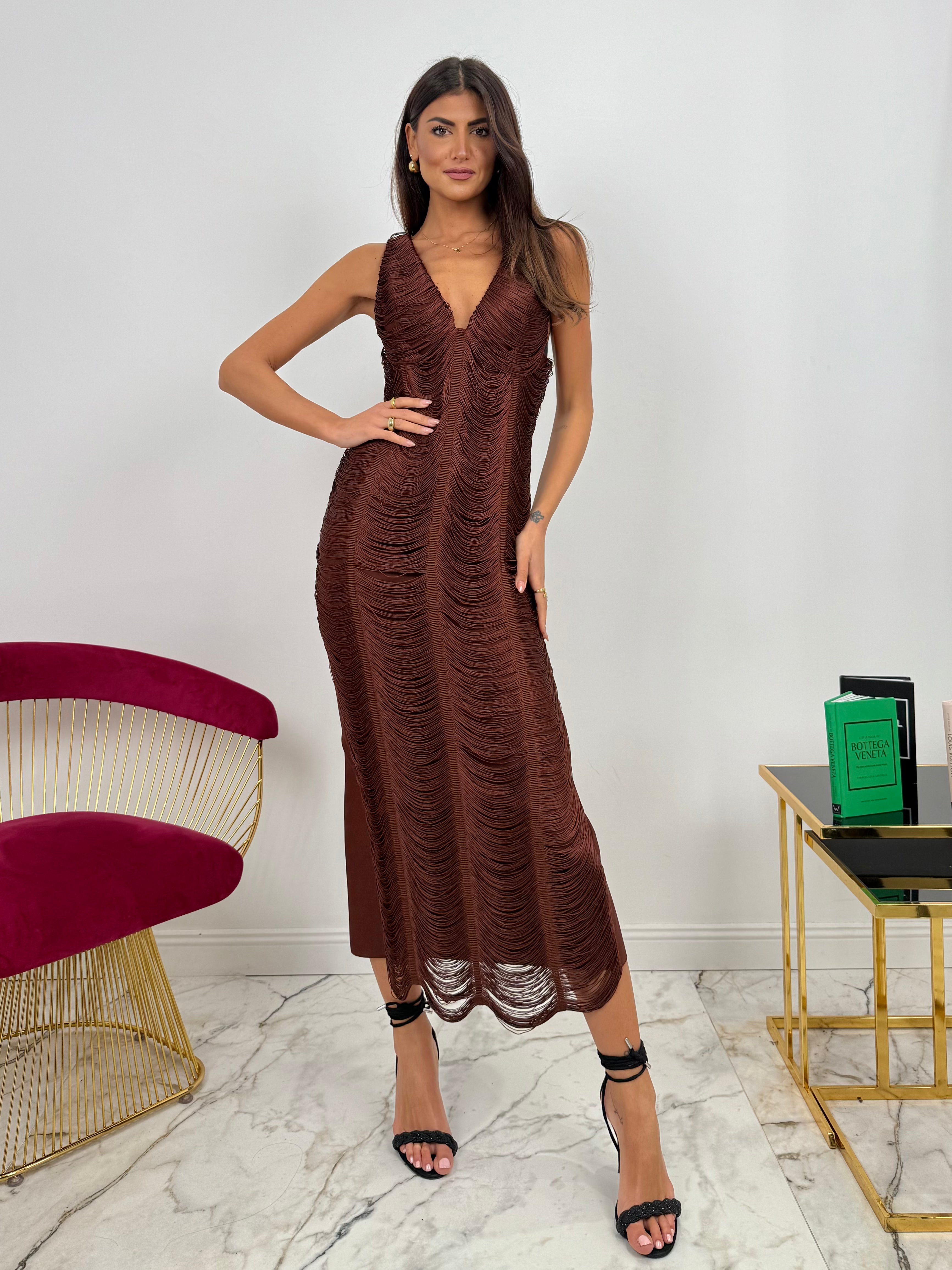 Abito Bandage Fringes All Over Moro